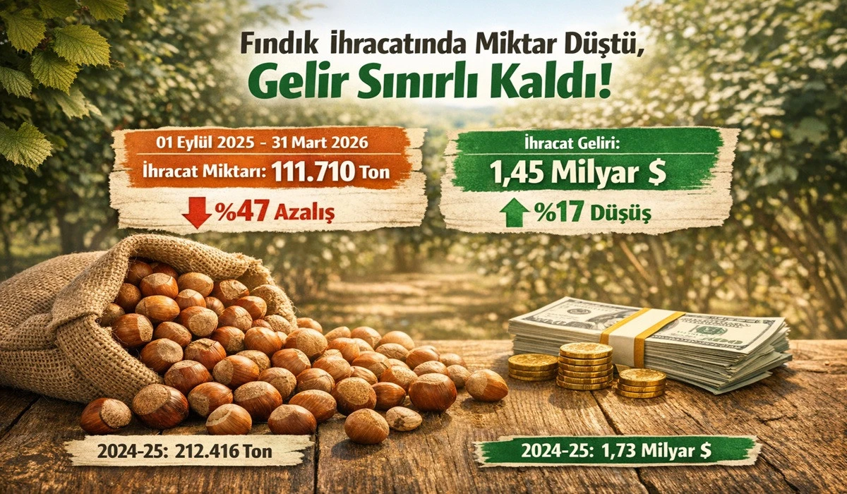 2024-25 sezonunda aynı dönemde 212.416 ton fındık ihraç edilmiş, 1 milyar 732 milyon dolar gelir sağlanmıştı. 2023-24 sezonunda ise 191.464 ton ihracat karşılığında 1 milyar 410 milyon dolar gelir elde edilmişti.