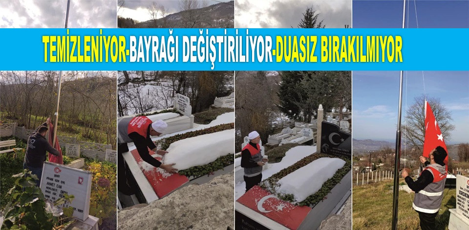 Yapılan çalışmalarla vatandaşların kabir ziyaretini rahatlıkla yapmasını sağlayan Mezarlıklar ve Cenaze Hizmetleri Şube Müdürlüğü personelleri, aynı zamanda büyük bir vefa örneği göstererek her ziyaretlerinde vatan uğruna şehit olan şehitler için Kur’an-ı Kerim okuyup, dualar ediyorlar.