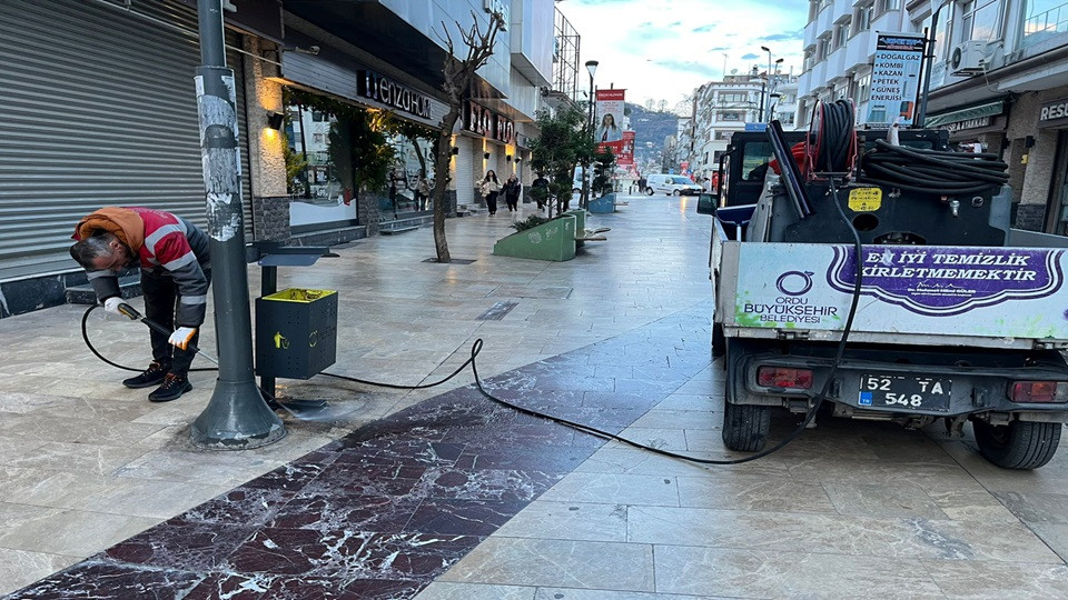 Büyükşehir Belediyesi ekipleri, Ordu’nun bir ucundan bir ucuna cadde ve sokaklarda ev temizliği titizliğinde çalışma içindeler.