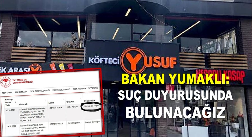Tarım ve Orman Bakanlığı’nın denetimleri sonucu, Köfteci Yusuf’a ait numunelerde domuz eti bulunmuştu. Şubat ve mart aylarında tespit edilen iki ayrı raporda da alınan numunelerde “tırnaklı-kanatlı” örneğine rastlanmadığı ancak domuz etinin bulunduğu tespit edildi.