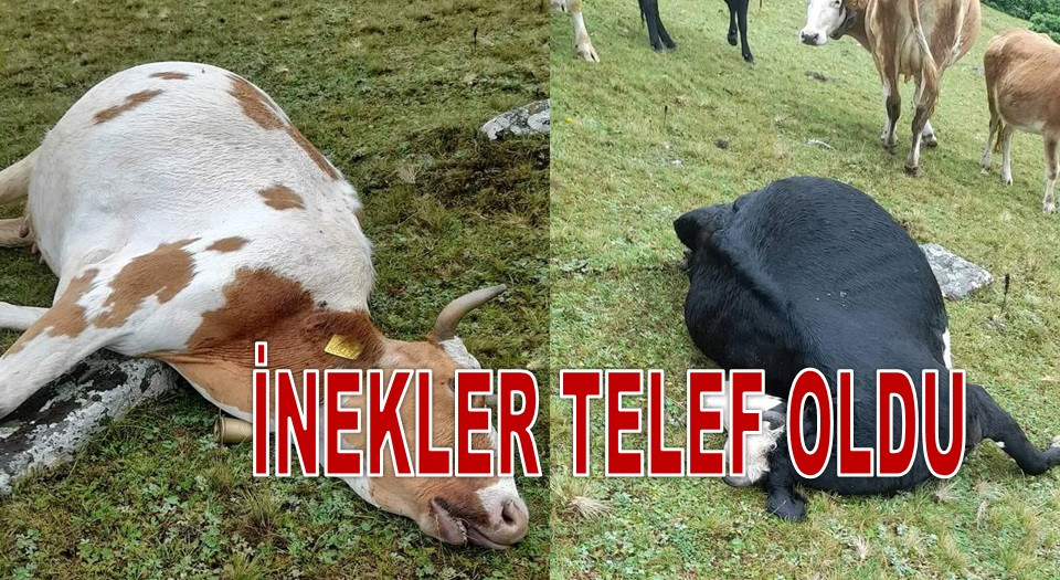 YAYLADA YILDIRIM DÜŞMESİ SONUCU İKİ İNEK TELEF OLDU